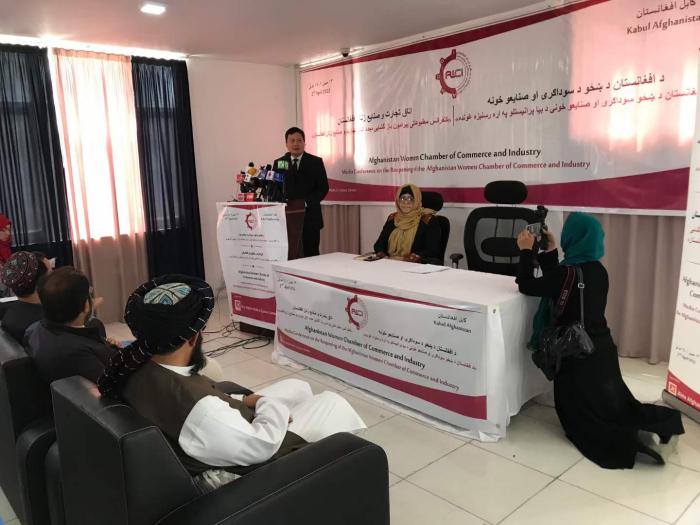 能感觉到,其中大家心里都没底,毕竟塔内部传统反对声音不小。听其言观其行,用事实证明。今天阿富汗全国妇女商会邀请中国城介绍两国商贸经验、我们欣然接受。想看看阿富汗伊斯兰酋长国重新执政8个月来对待妇女融入社会的包容程度,而这一点、世界关注,也是塔新政权解套的关键一点。阿妇女商会主席请中国城代表在主宾席就座,商务部副部长、信息文化与新闻部副部长莅临,与中国城递次发言。自始至终气氛热烈,充满自由对话未见谁好麻烦。